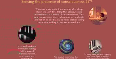 We never truly experience the absence of consciousness. Even in complete darkness, we are aware of our presence. In deep sleep, a subtle shift around us often stirs awareness long before our senses can detect it. Consciousness is always present, an unbroken thread through all states of being.